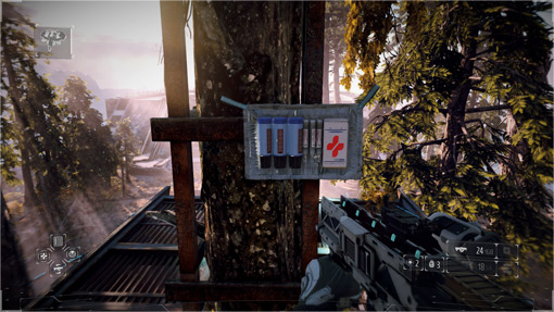 方向キー右を長押しすることでタクティカルエコーを使用できます。タクティカルエコーを使うと電磁パルスにより、一定時間敵や味方だけでなく、重要なアイテムなどをハイライト表示し、壁を通しても視認可能になります。さらに、照準を特定物に合わせることで、詳しい情報が表示されます。