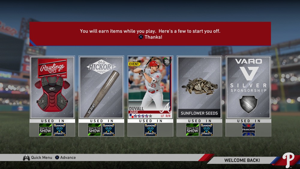 | EQUIPMENT(用具) | 【DIAMOND DYNASTY】と【ROAD TO THE SHOW】でオリジナル選手の強化に使えます |