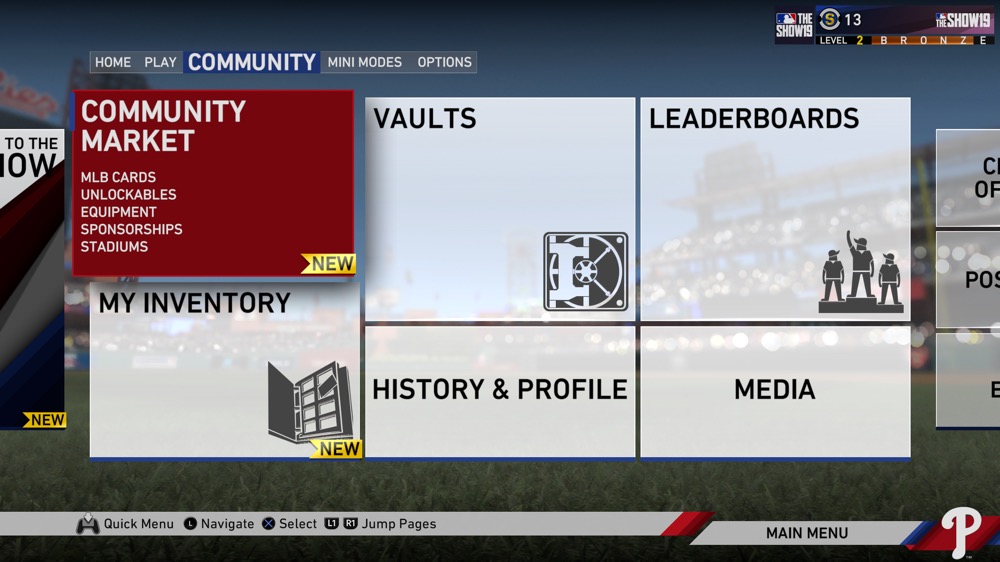 | THE SHOW SHOP(ストア) | ゲーム内通貨(Stubs)を消費してゲーム内で使用するさまざまなアイテムを入手できます |