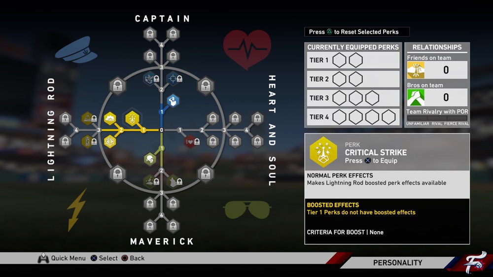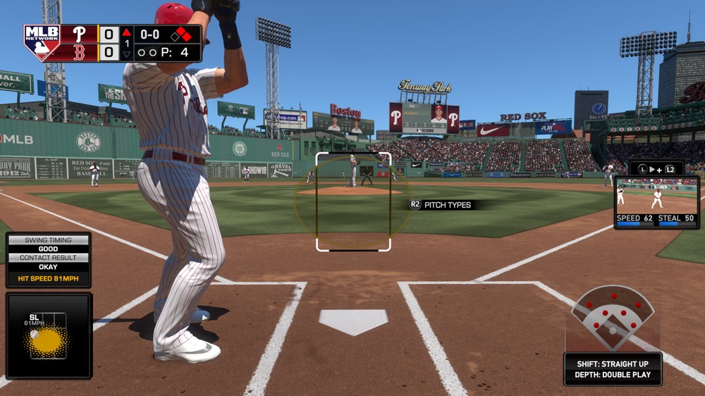 | Chased(泳いだ) | ストライクゾーン外のボールに釣られて振ってしまうこと。パワーとコンタクトが損なわれます。 |