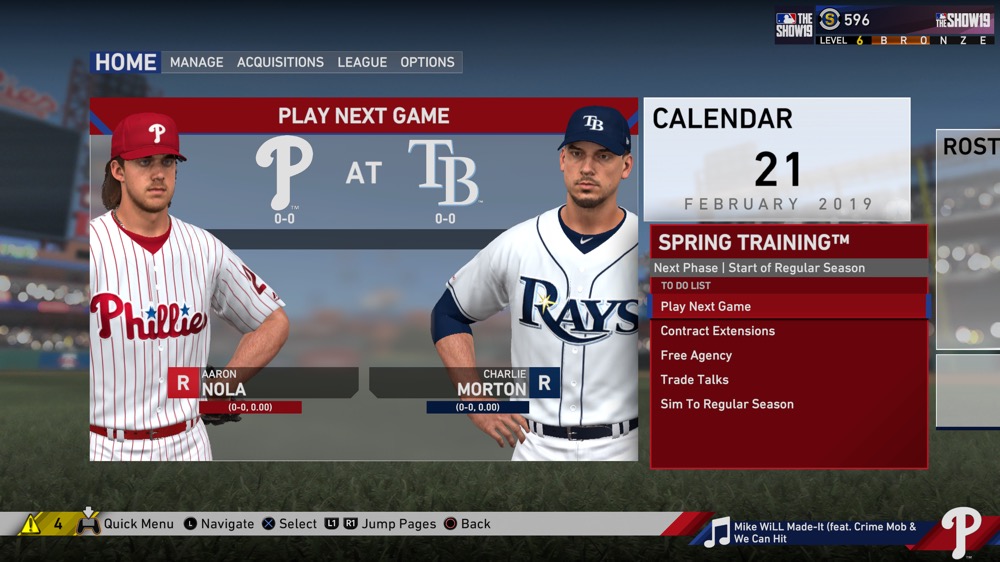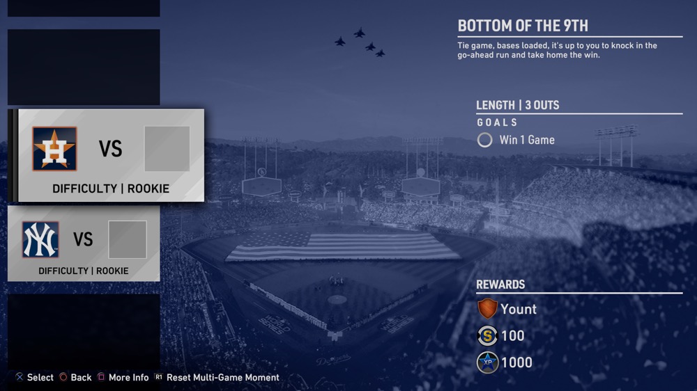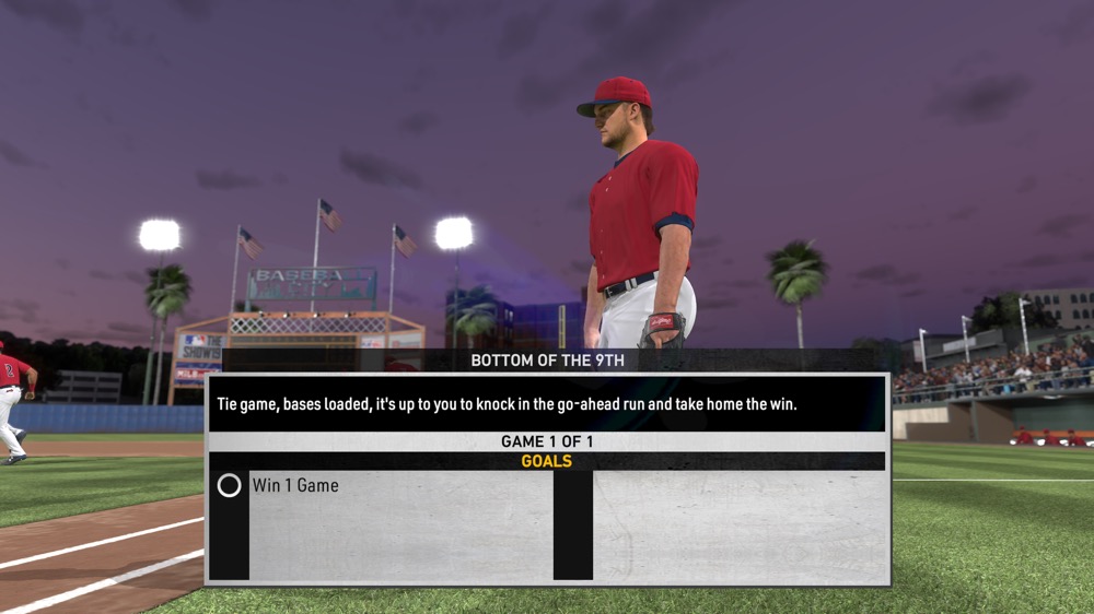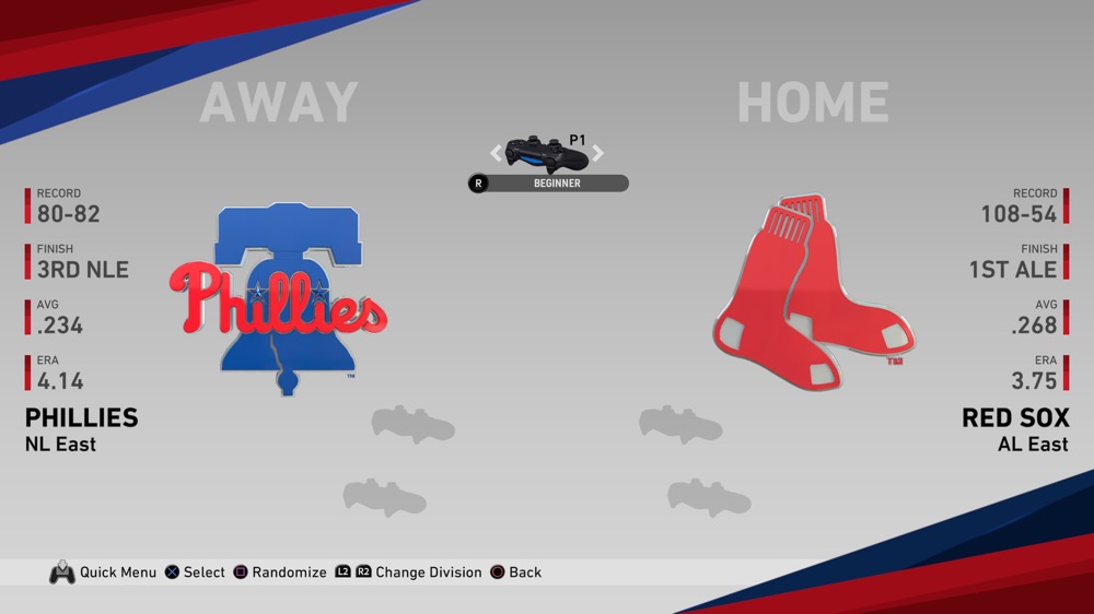 各初期設定の選択を終了した時点でまだデータインストールが完了していない場合は、ロサンゼルス・ドジャースとボストン・レッドソックスの試合をプレイできます。
