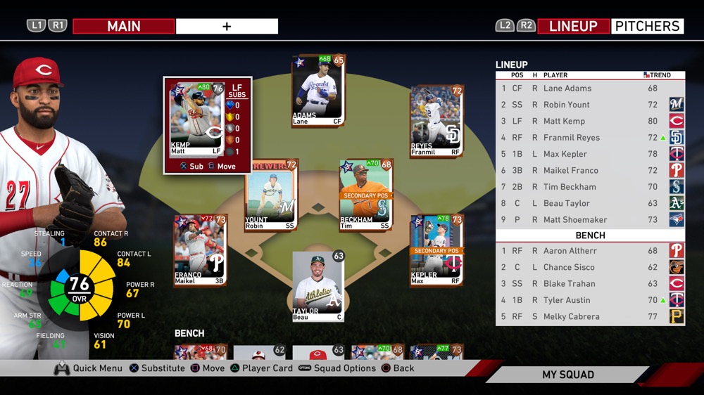 | MLB CARDS(選手カード) | 【DIAMOND DYNASTY】で選手として使えます |