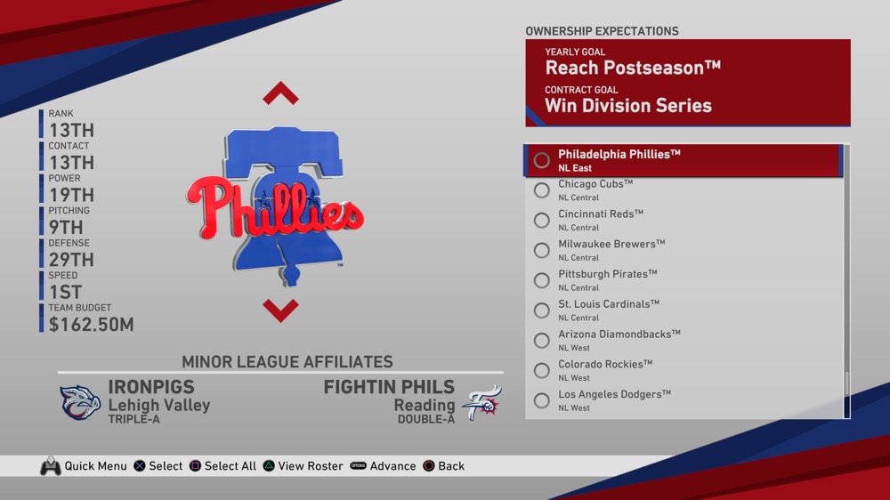 | FRANCHISE BUDGET(フランチャイズ予算) | Stubsを消費して【FRANCHISE】モードでの球団予算を追加します |